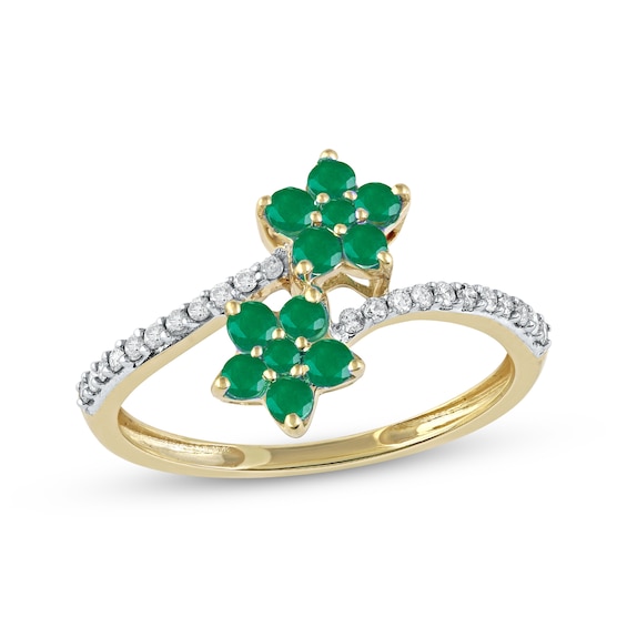 Emerald Flower Ring 1 8 Ct Tw Diamonds 10k Yellow Gold Kay